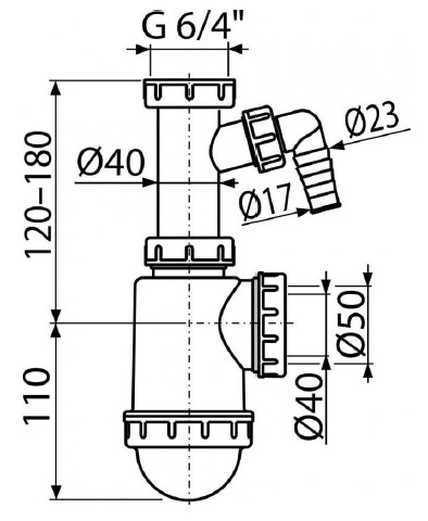 Сифон Alcadrain A443P предназначен для мойки или умывальника и применяется для организации слива воды в канализацию и предотвращению поступления неприятных запахов в обратном направлении.Сифон A443P изготовлен из полипропилена, скорость слива воды 44 литров в минуту, присоединительный размер к выпуску мойки или раковины 1.1/2", оснащен одним отводом 17-23 мм для подключения посудомоечной или стиральной машины, подключение к канализации 40/50 мм.