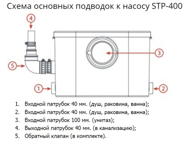 Насос измельчитель Jemix STP-100 Люкс предназначен для подсоединения напольного унитаза и дополнительно двух других устройств (раковины, душа, умывальника, стиральной или посудомоечной машины).