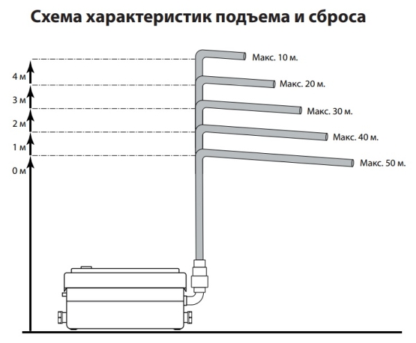 - Максимальный сброс по горизонтали: до 50 м
