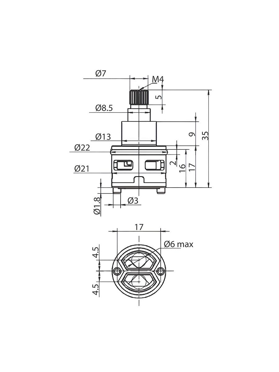 Картридж переключателя душа керамика 90град h=22мм MELODIA MKP20753WC предназначен для соединения холодной и горячей воды с целью получения на выходе воды требуемой температуры. Принадлежит к новому поколению картриджей, состоит из керамического штока и керамических пластин, отличается современным и эргономичным дизайном, высоким качеством.