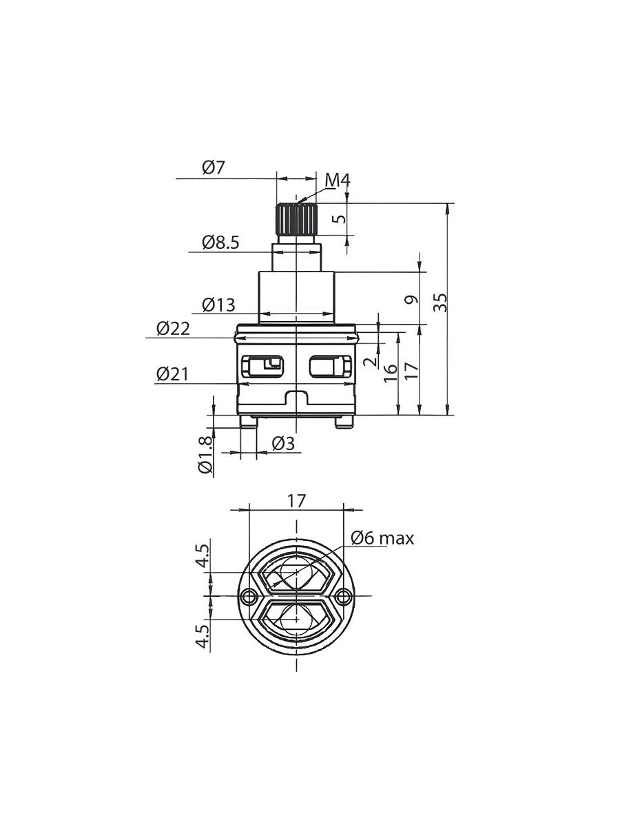 Картридж переключателя душа керамика 120град h=22мм MELODIA MKP20753