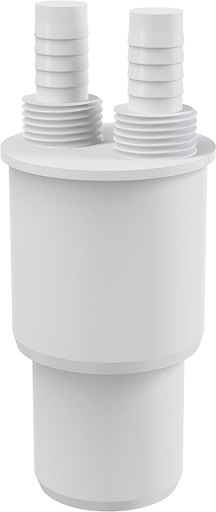 Переходная муфта Alcadrain AKS6 применяется для подключения сливных шлангов к стоку канализации с помощью штуцера диаметром 14 мм с возможностью фиксации резьбовым соединением 1/2". Изготовлена из полипропилена, подключение к канализации 40/50 мм.