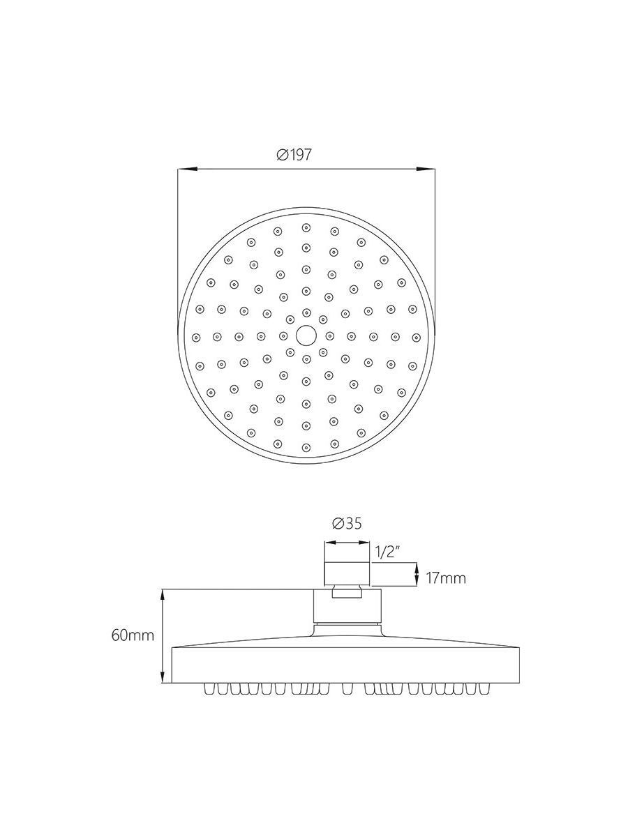 Лейка изготовлена из ABS-пластика и применяется в смесителях со стационарной штангой для тропического душа или в смесителях скрытой установки с верхним душем. Присоединительный размер 1/2".