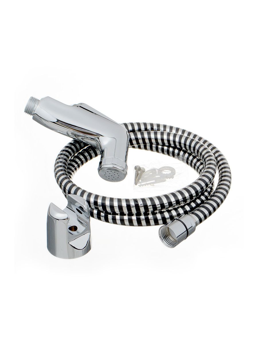 Лейка для биде изготовлена из ABS-пластика с хромированной поверхностью. Снабжена рычажком-выключателем для остановки потока воды. В комплекте лейка, шланг и крепление к стене.