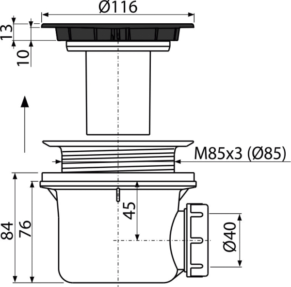 Сифон Alcadrain A49BLACK предназначен для организации слива воды из душевых поддонов с диаметром сливного отверстия 90 мм. Изготовлен из полипропилена, высота монтажа 84 мм, крышка сифона из металла с черным матовым покрытием, подключение к канализации 40 мм, скорость стока воды 43 литра в минуту.