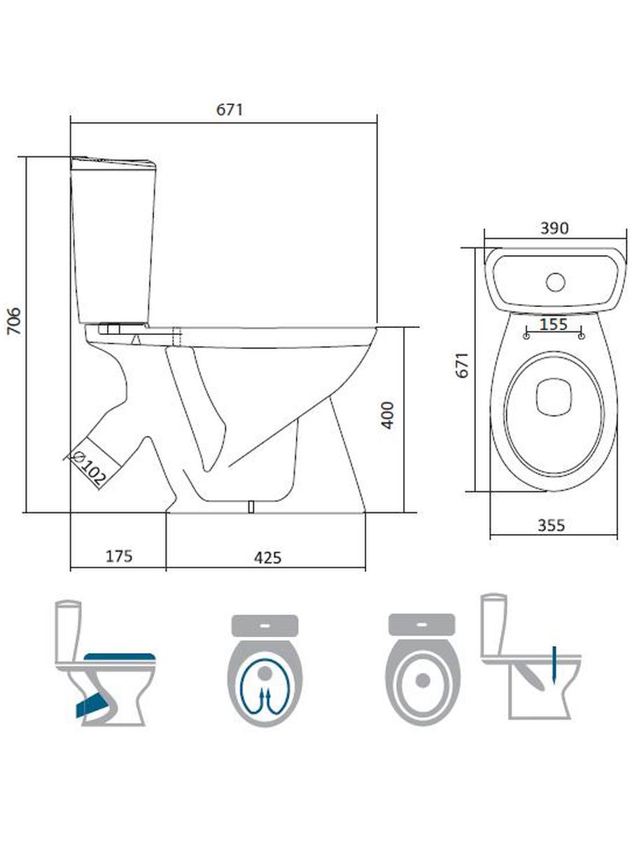 Межосевое расстояние крепёжных отверстий зависит от модели, рекомендуем уточнять перед покупкой!Унитаз-компакт Бриз косой выпуск, нижн.подв., сиденье полипропилен Сантек Унитаз-компакт изготовлен из сантехнической керамики.