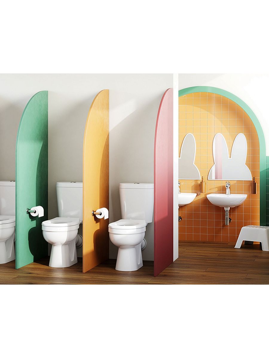Межосевое расстояние крепёжных отверстий зависит от модели, рекомендуем уточнять перед покупкой!Детский унитаз-компакт Каспер придаст атмосферу уюта и беззаботности интерьеру любой ванной комнаты. Он прекрасно впишется как в частные, так и общественные пространства – везде, где есть необходимость установить удобное и стильное сантехническое изделие для гигиены детей.