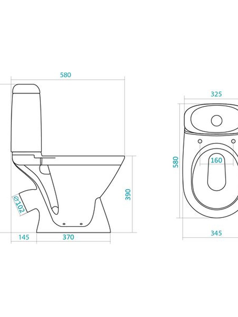 Уменьшенная габаритная глубина унитаза (580 мм) позволяет устанавливать его в небольших санузлах.