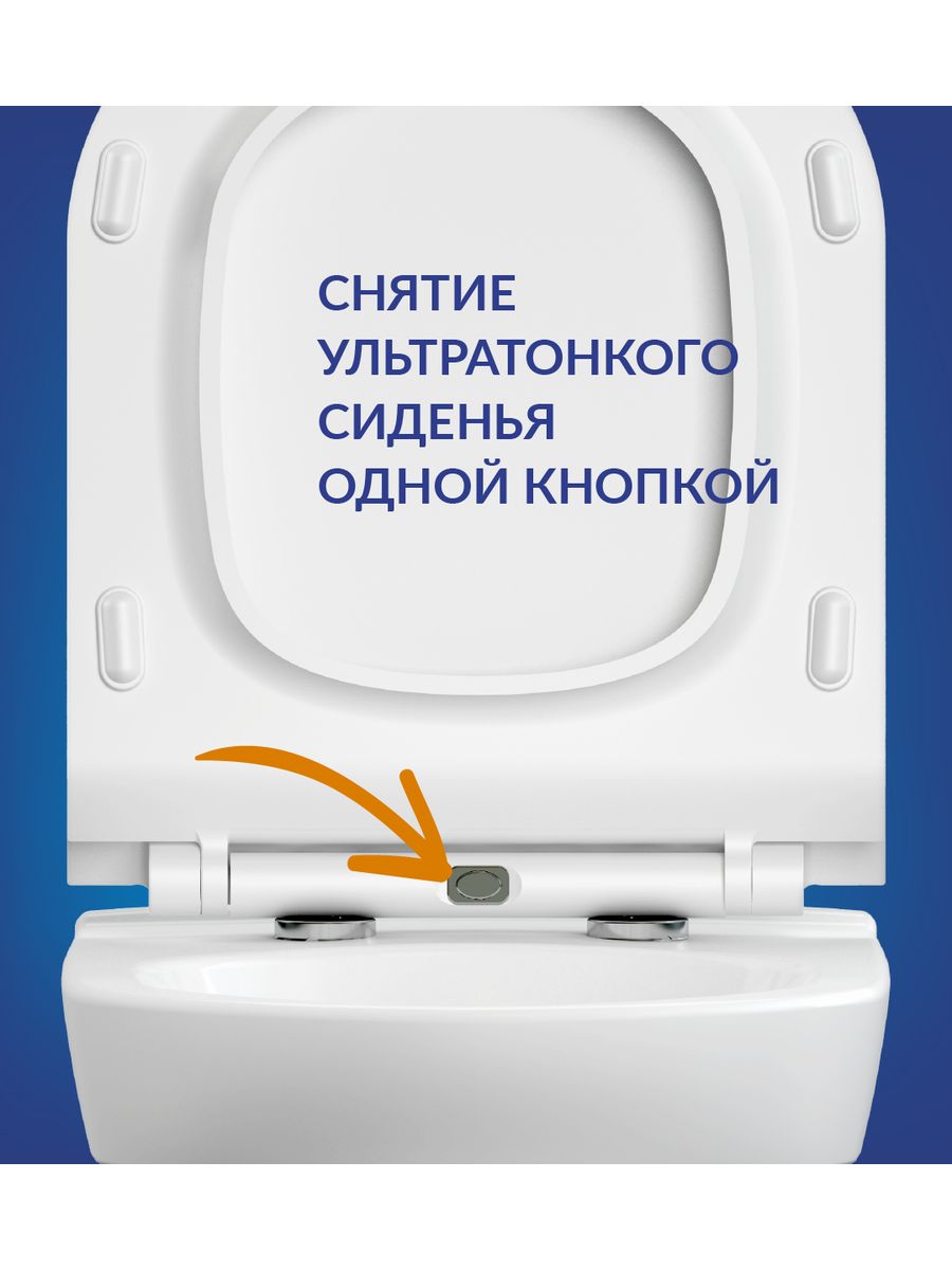 Межосевое расстояние крепёжных отверстий зависит от модели, рекомендуем уточнять перед покупкой!Безободковый подвесной унитаз с ультратонким, антибактериальным сиденьем с плавным закрыванием и легкосъемным механизмом