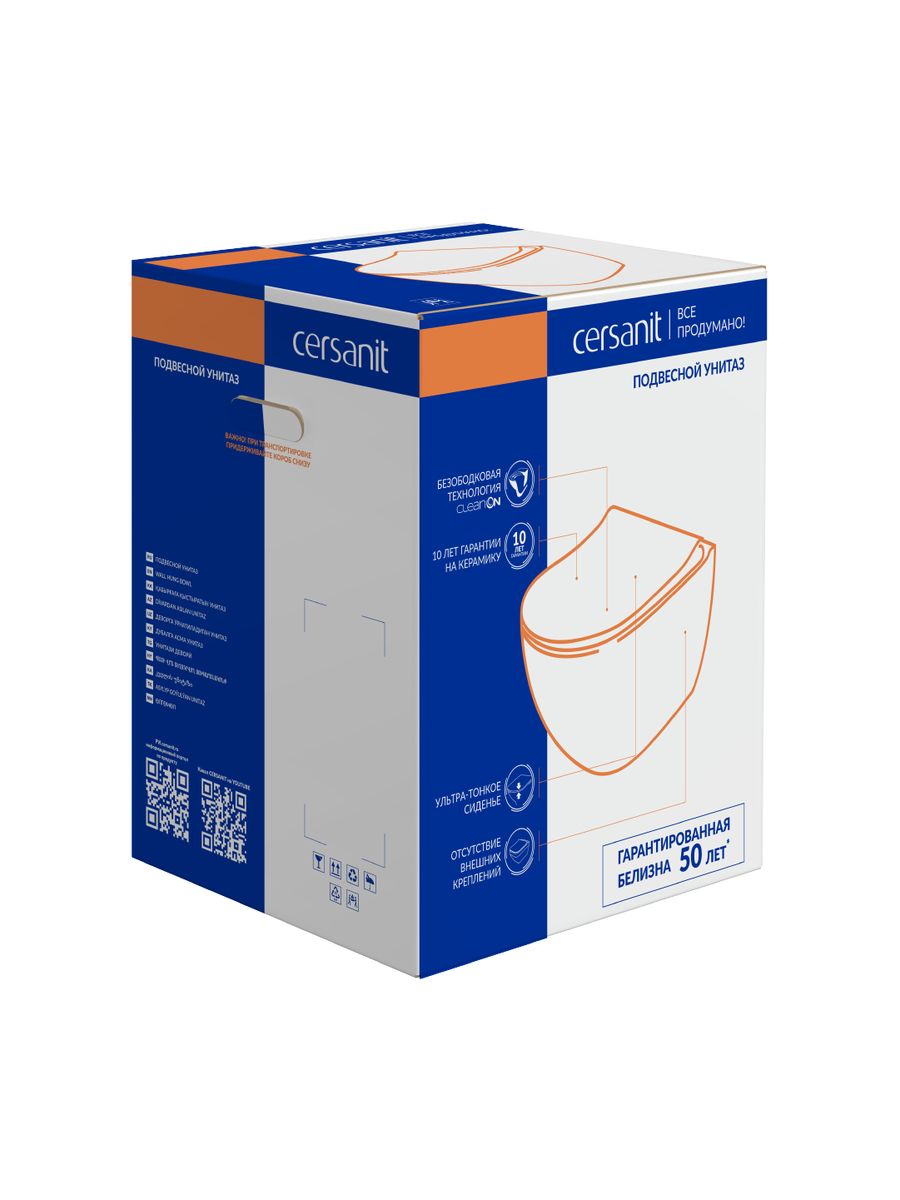 Унитаз подвесной безободковый CITY Clean On DPL EO slim Cersanit